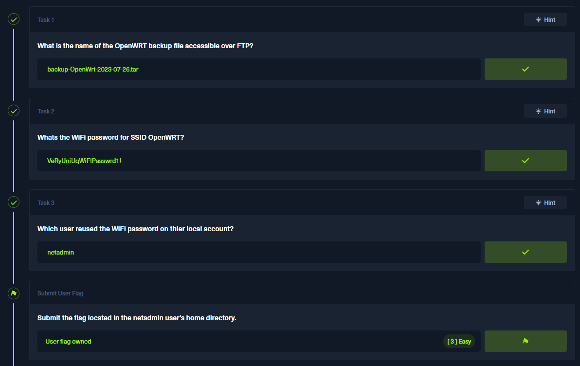 처음에 root를 해보았으나,,ㅎㅎ netadmin 계정이 로그인 되었다. ssh로 로그인하면 user.txt를 확인할 수 있다!