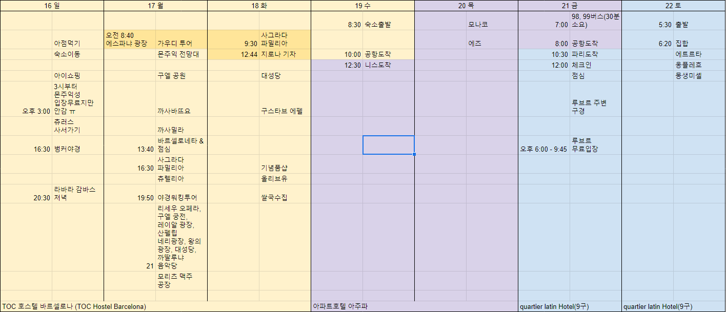 스페인 - 바르셀로나, 시체스, 타라고나, 몬주익