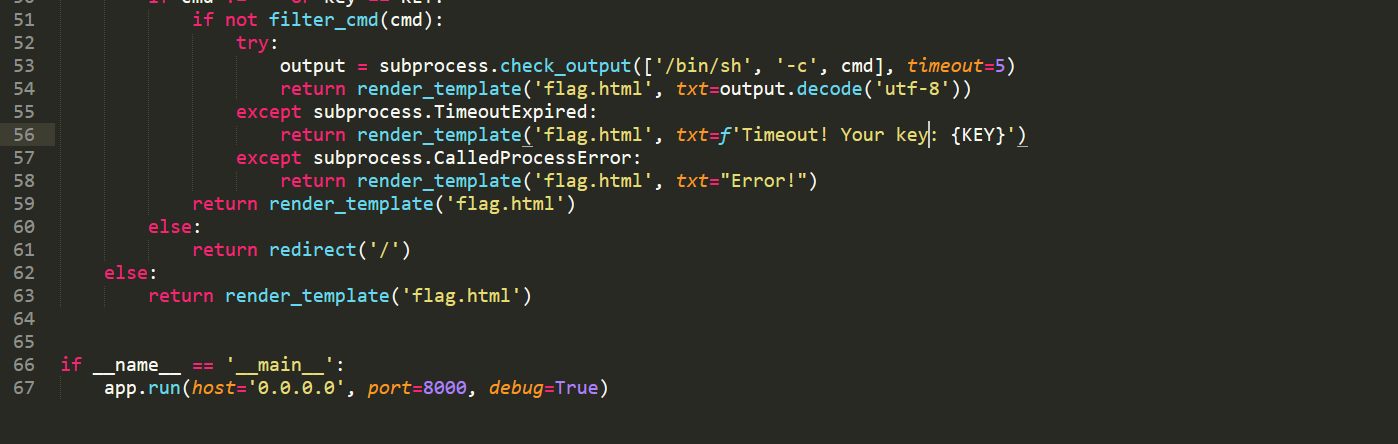 하지만 코드를 다시 보다보니, timeout 에러를 내면서 key를 출력해주는 부분이 눈에 띄었다.... 그래서 timeout 에러를 내기위한 명령어를 사용하였다.