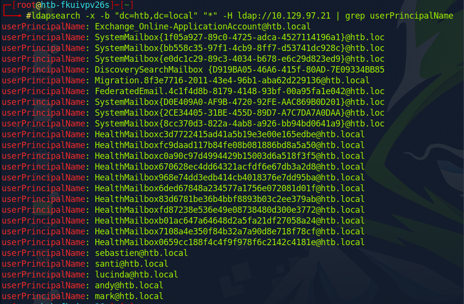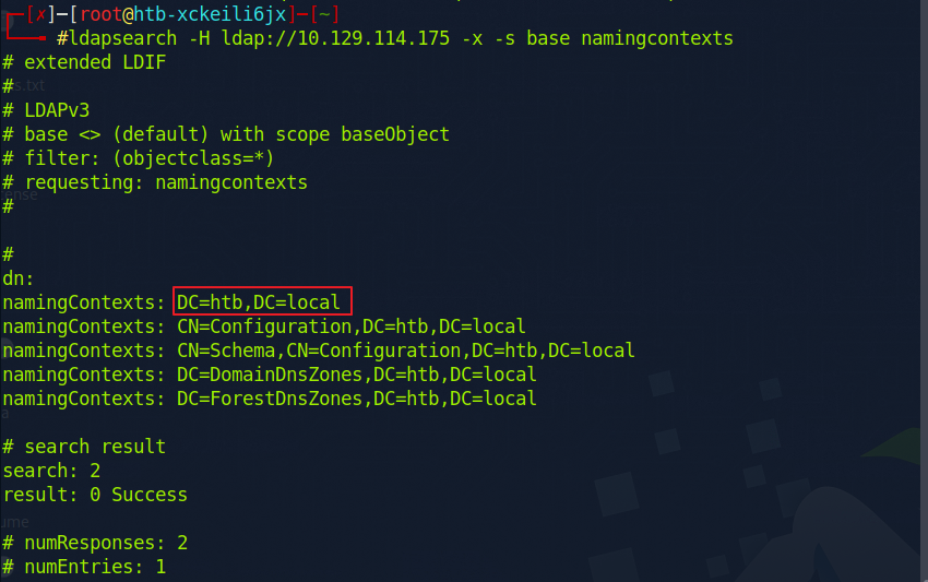 ldapsearch로 도메인을 얻음. 계정은 제대로 나오지 않음. 그래서 다른 도구를 이용해야 했다..