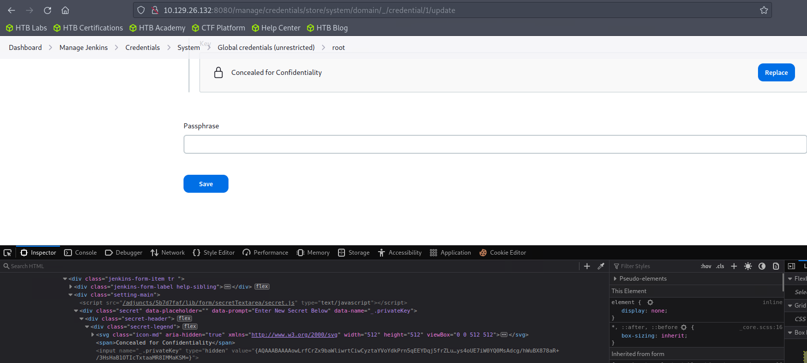 발견한 패스워드로 웹에 로그인해본다. 메뉴를 이것저것 다 사용해보다가, credentials 에 root계정에 대한 것이 있아서 해당 기능과 관련이 있을것 같았다.