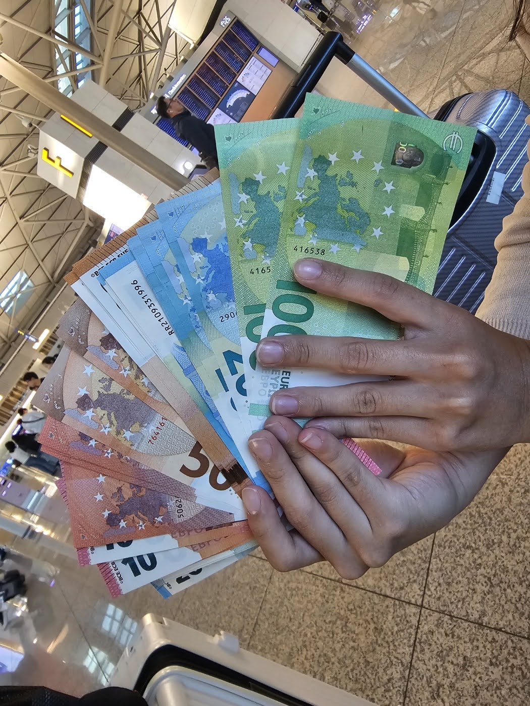 2023.10.05 23시 55분 출발 비행기를 탑승하기 위해 공항에 일찍 도착했다. 저녁 7시쯤 미리가서 발권을 하고(패키지는 단체라서 온라인 자리 지정이 안되는 것으로 알고 있음) 8시쯤 가이드님을 만나서 안내사항을 전달받았다. 카운터가 열릴 때까지 엄마랑 유로 구경도 하고~