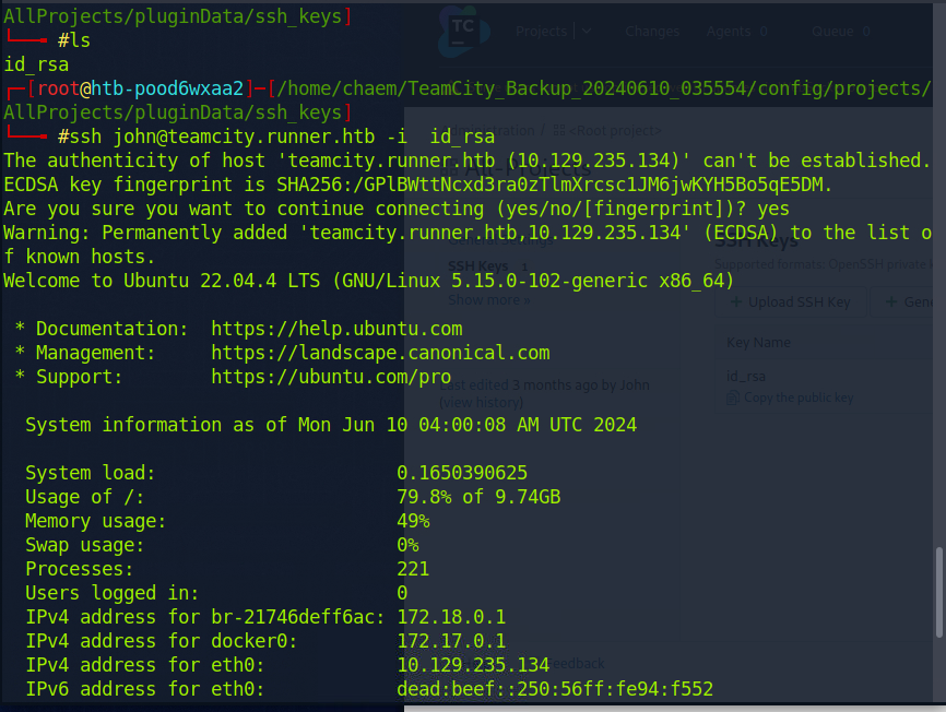 ssh john@teamcity.runner.htb -i id_rsa