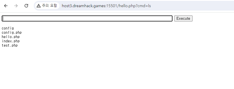 hello.php로 가보면 업로드한 웹쉘이 실행되는 것을 알 수 있다.