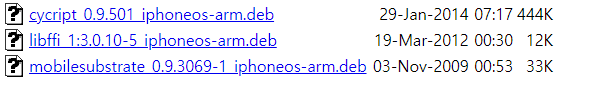 설치는 cydia에서 cycript를 검색하여 쉽게 설치하였으나, http://www.cycript.org/debs/ 에서 .deb 파일을 받아서 설치할 수도 있다. mobilesubstrate와 libffi도 필수적으로 있어야 하는 것 같다. 설치하는 데는 filezilla sftp를 이용하여 파일을 넣고 filza 앱으로 간편하게 설치하였다. mobilesubstrate와 libffi 역시 cydia에서도 받을 수 있다. 단, 따로 설치하려면, 어디서든 사용할 수 있게 /usr/bin 위치에 설치해 줘야한다.