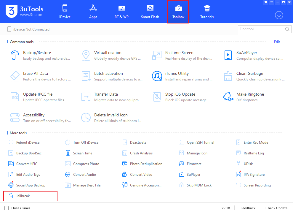 요즘은 3utools에서 toolbox > jailbreak에서 더 손쉽게 가능합니다!