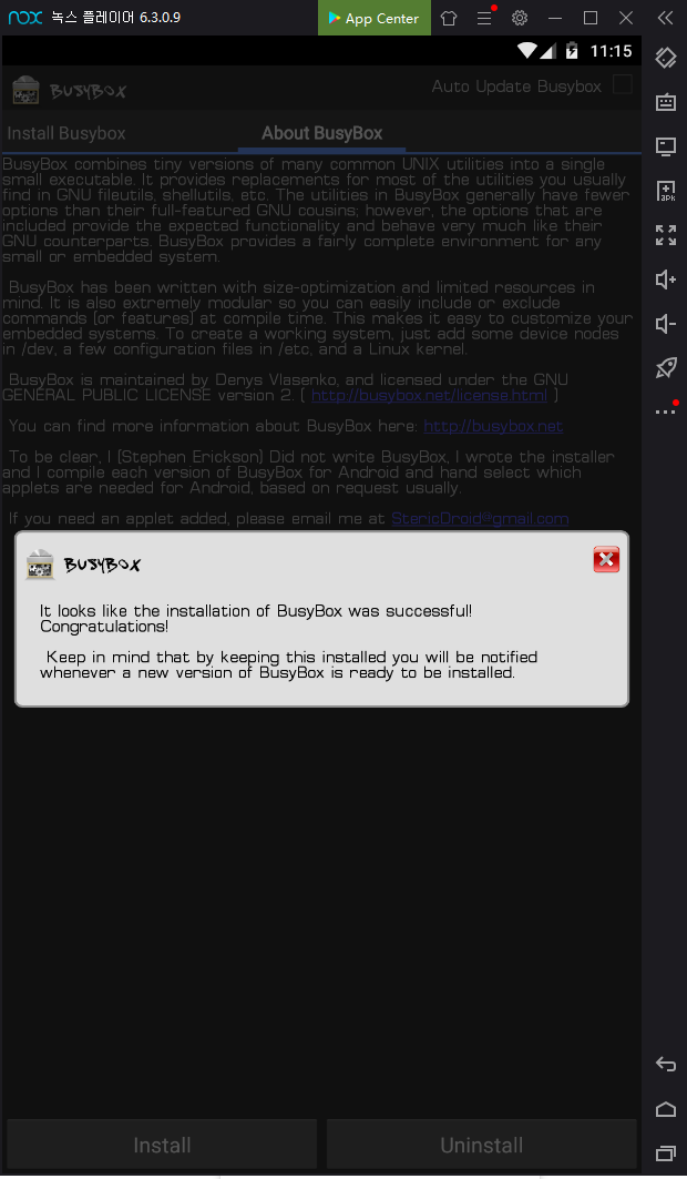 busybox라는 툴을 이용하면 명령어를 편안하게 사용할 수 있음. 구글 플레이어에서 install 하여 설치하면 끝!