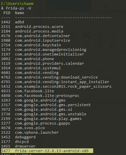 6. ps | grep "frida" #server가 실행 중임을 확인
