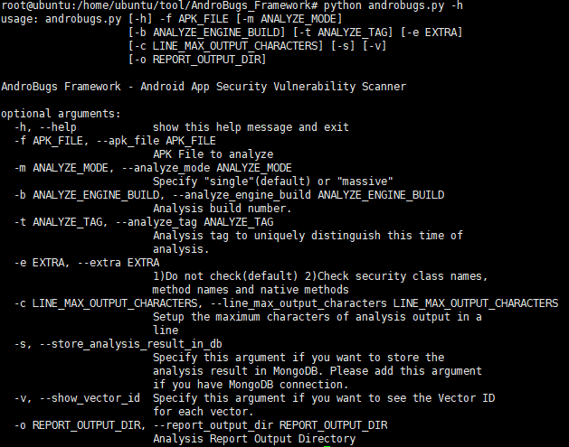 python androbugs.py -f apk이름.apk