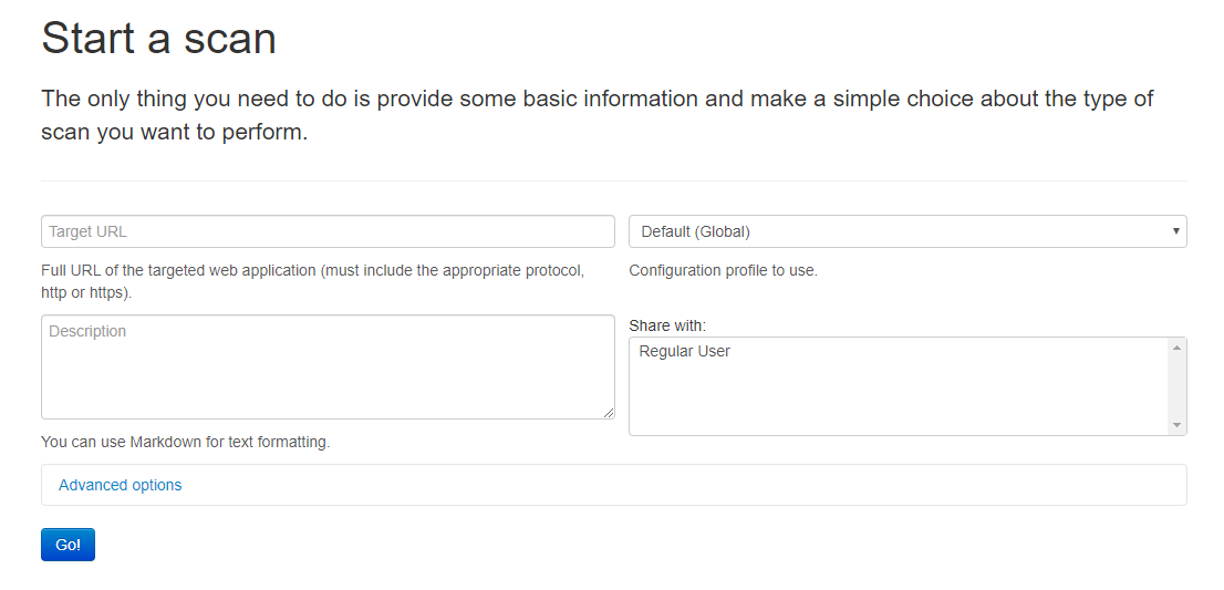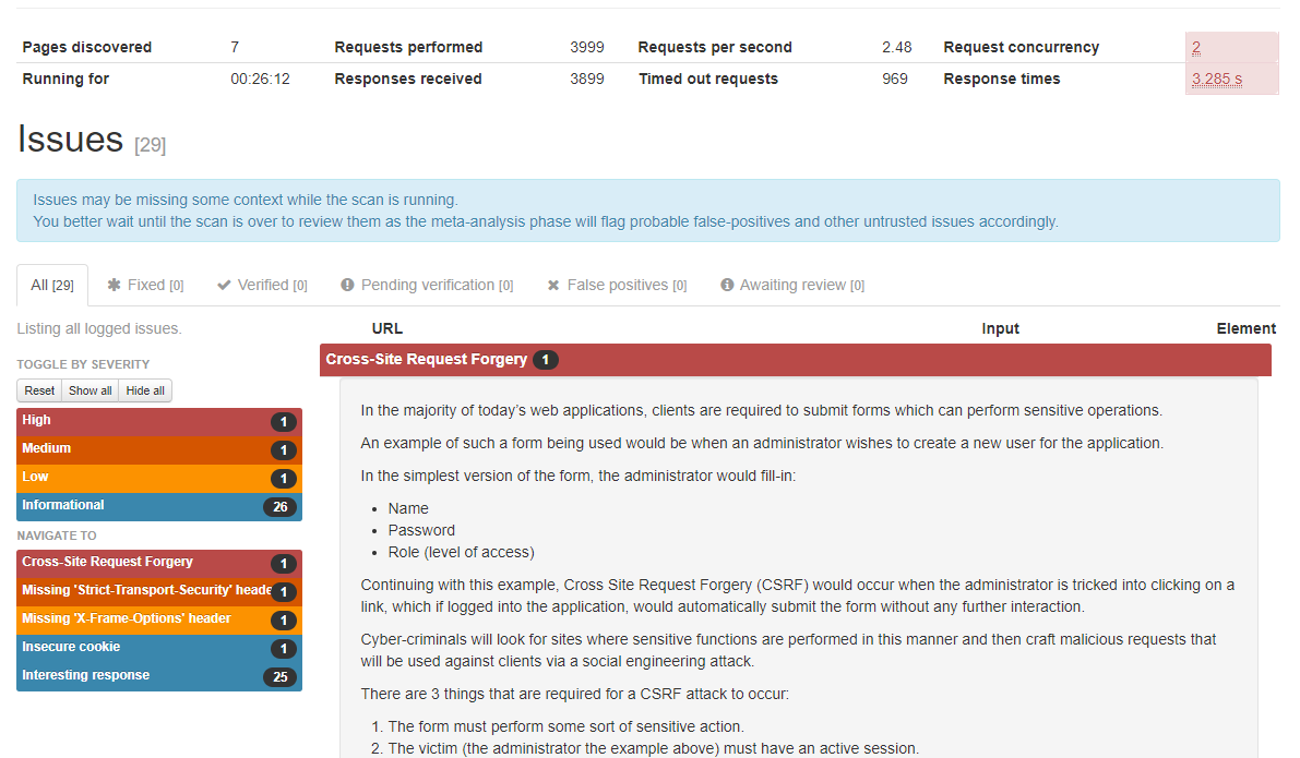 위의 메뉴에서 scan > new 로 들어가서 target URL을 설정해주면 스캔을 시작한다.