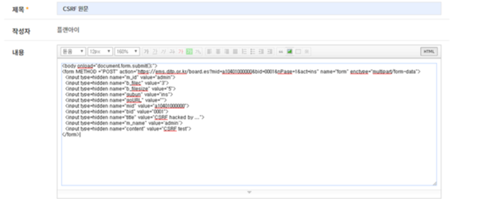 <form METHOD ="POST" action="https://URL/board.es?bid=0001&nPage=1&act=ins" name="form" enctype="multipart/form-data">