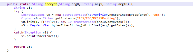 encrypt() 함수를 보면 암호화 과정을 볼 수 있습니다.