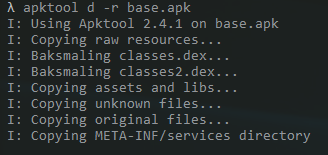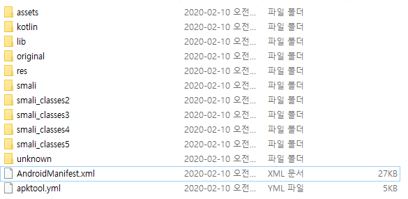 apktool은 apk파일로 압축되어 있는 것을 resources.arsc, classes.dex, XML 파일들을 디버깅(debug)파일 형태로 변환을 해주고 이를 수정한 뒤에 다시 수정된 apk파일로 생성(build)할 수 있는 도구이다.
