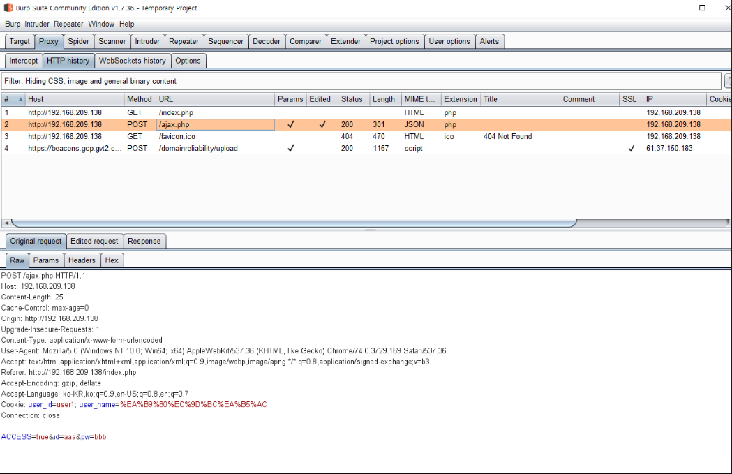 ID와 PW가 전송되는 포맷과 로그인 실패 시 나타나는 문구를 알아야 한다.